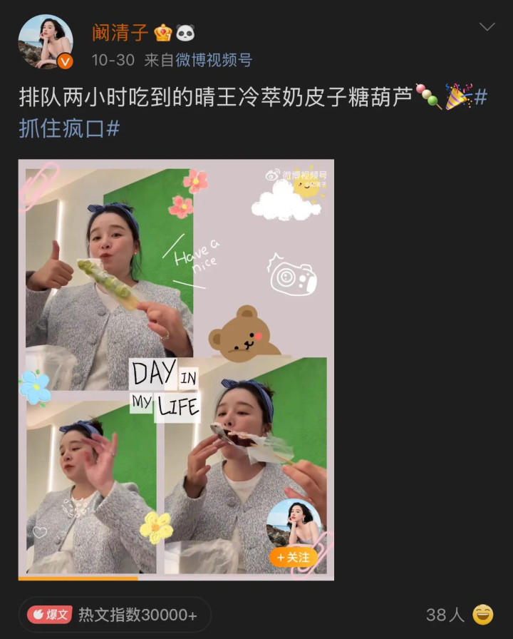 可以看到,在生产前的一段时间里,他的情况其实是相当的不错的,心情和食欲都很好,还和大家分享最近的网红小吃。