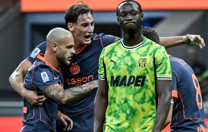 国际米兰则在主场险胜萨索洛。这场比赛国际米兰进球比较早。迪马尔科在第14分钟就帮助国际米兰取得领先。直到第81分钟,国际米兰才再进一球。卡洛斯-奥古斯托的射门被挡了一下折射入网,运气相当不错。随后,谢迪拉单刀破门,帮助萨索洛扳回一球。但是,萨索洛没能再进一球。最终国际米兰2-1拿下比赛。