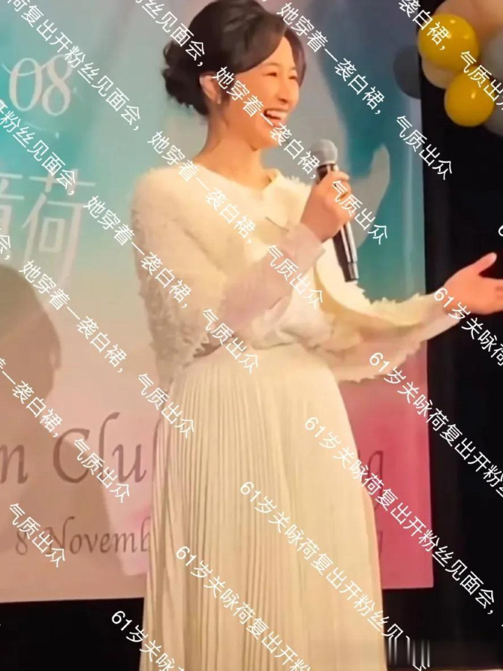 61岁关咏荷复出开粉丝见面会, 她穿着一袭白裙, 气质出众