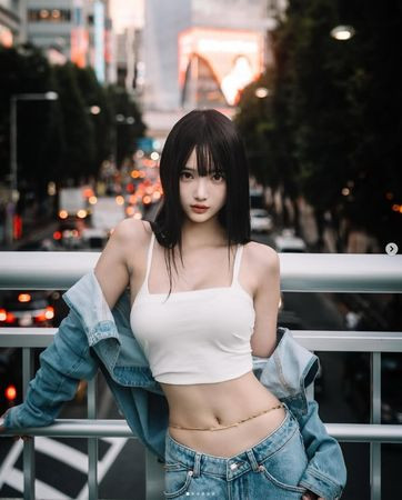 模特儿网红七七拥一头黑长发、魔鬼身材。