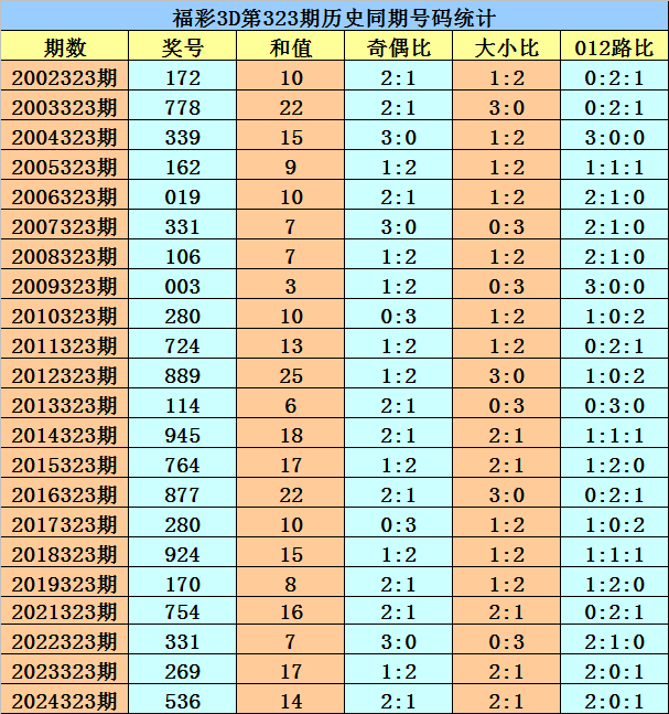 福彩3D第2025323期开奖日期:2025年12月3日,历史上第323期已开出了22次奖号,历年同期号码分别为:172、778、339、162、019、331、106、003、280、724、889、114、945、764、877、280、924、170、754、331、269、536。