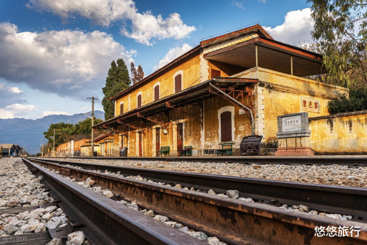 滇越铁路上的碧色寨,黄墙红瓦的法式建筑,旧火车轨道,日落洒在老车站,氛围感直接拉满。