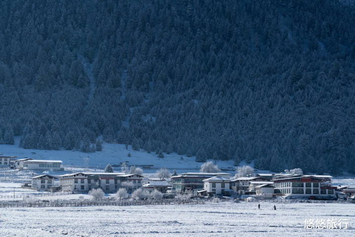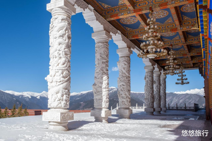 昌列寺矗立在山顶,已有800多年历史的寺院。冬季下雪后,寺院如云顶天宫。