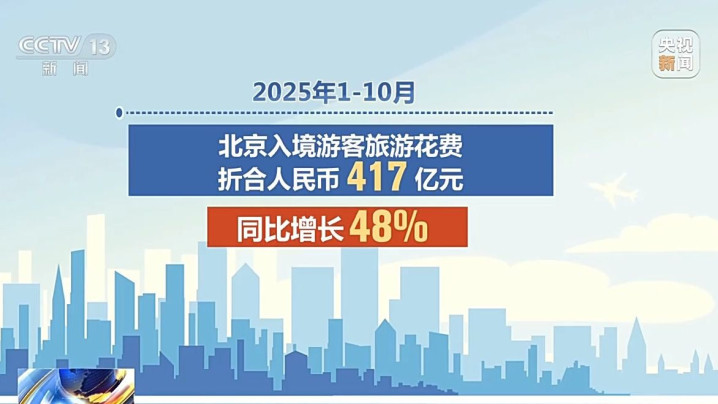 北京、广州等地文旅消费同步增长,2025年1—10月北京入境游客旅游花费折合人民币417亿元,同比增长48%;厦门前三季度入境过夜游客154.62万人次,旅游消费13.3亿美元,同比增幅均超49%。